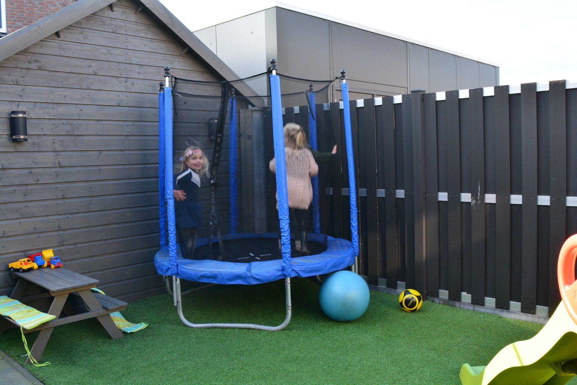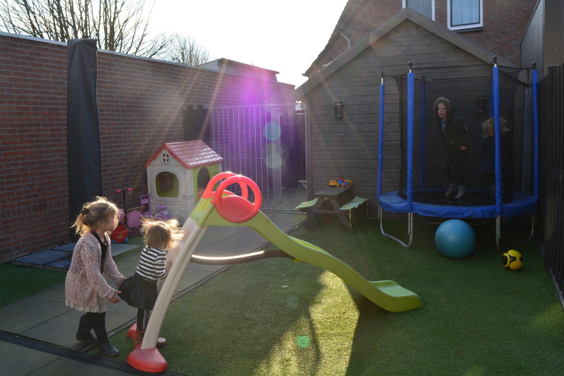 Het streven is dat we minimaal 1x per dag naar buiten gaan. Lekker spelen in de achtertuin of in de speeltuin voor de deur. Bij droog weer spelen we natuurlijk vaker buiten. Ook gaan we lekker wandelen met de hond in de bolderkar.